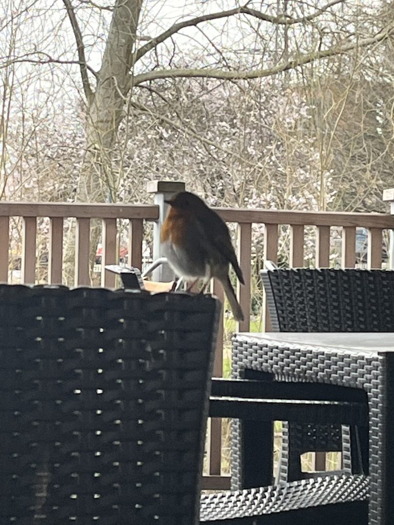 About eighteen months ago, I took this image of one perched on a chair whilst we were having a coffee. It got me thinking about how they serve us in our gardens. We hear that they are known as the ‘Gardener’s Friend,’ always being within a few metres as the keen horticulturist does their work. How many animals are there that are like this? So many cultures connect the sight of these as spiritual and of new beginnings. I have known them to be seen as a sign from a lost loved one, too.