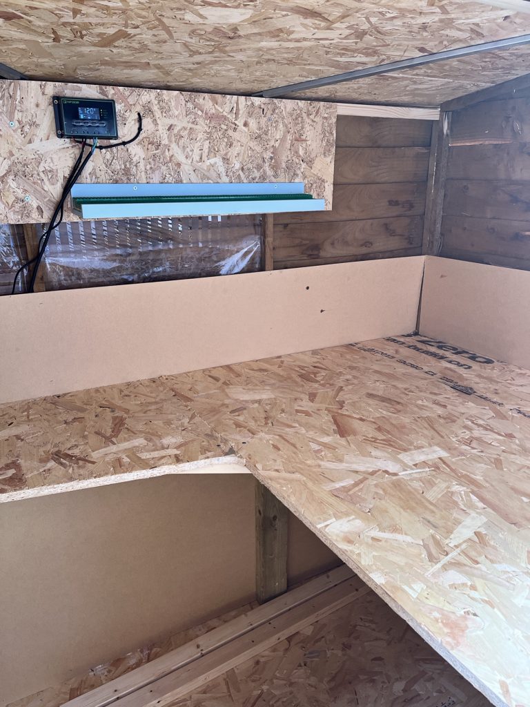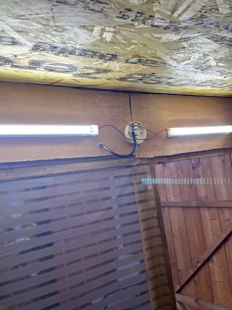 The added interior was done and the panel placed on the roof. Some 12v lighting was put in with a mains switch to control it. This was a good day’s work, with it being a little easier if you have an extra pair of hands.