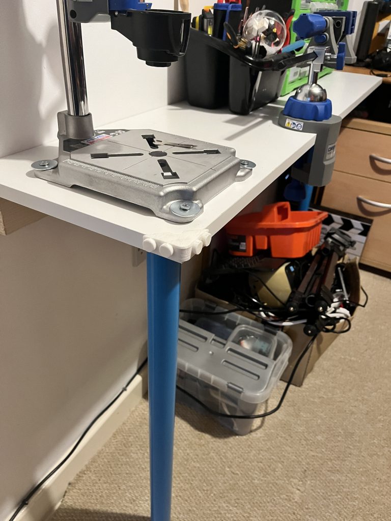 I realised that it had a sharp edge, likely benefiting from a bevelled corner, I didn’t want to cut through the tidy laminate. So, I decided to add a custom corner-buffer, making it less likely to jab me in the leg, as I passed through. The .obj file can be found here, or you can click the icon, below. You can see that it has made a great addition, making the space far more usable and offering me the chance to get rid of the awful under-desk drawers, amongst other bits that are no longer needed. These shall be donated to my local charity.