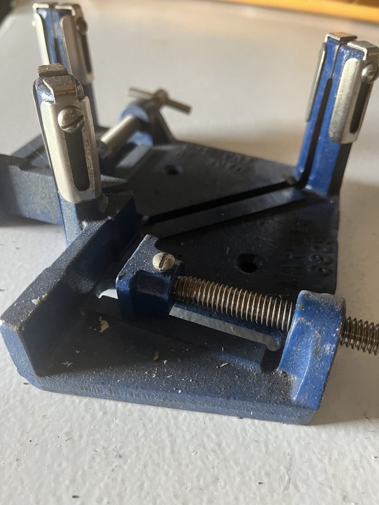 You can see by the image, that the metal buffers are still in place, protecting the main structure of the tool. It is also good as a straigh-cut vise. The limit of angles is where the power saws come into their own. As the wood is held in place, if fixed down onto a bench, it keeps your cut, precise. Not a bad find, and a useful tool for the my tool-farm.