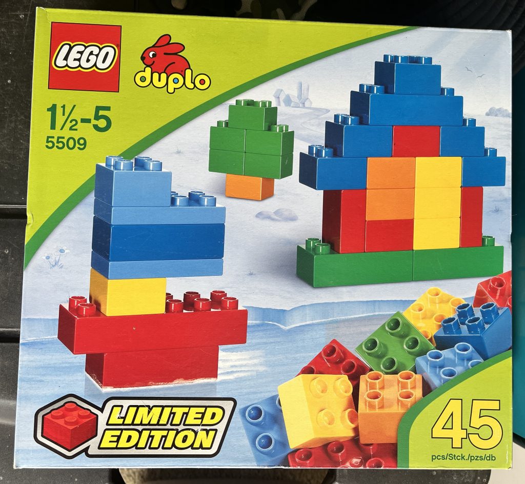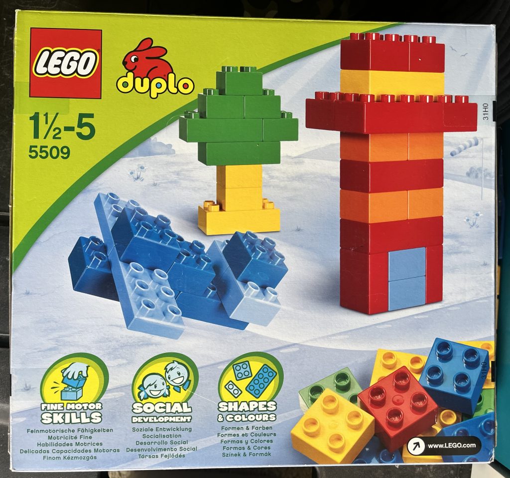 Looking through the books and games at the local charity shop, I found this rare item. I don’t mean the set, itself, just that there was Duplo still in its box. Due to the nature of it, it is often emptied from the box and discarded, quickly, or, it is passed down before being sold or donated. Many of us had Duplo blocks that had been chewed and scratched; the ultimate signs of fun from past years.