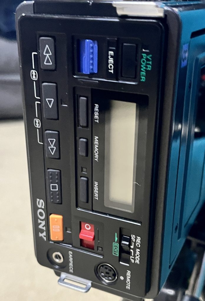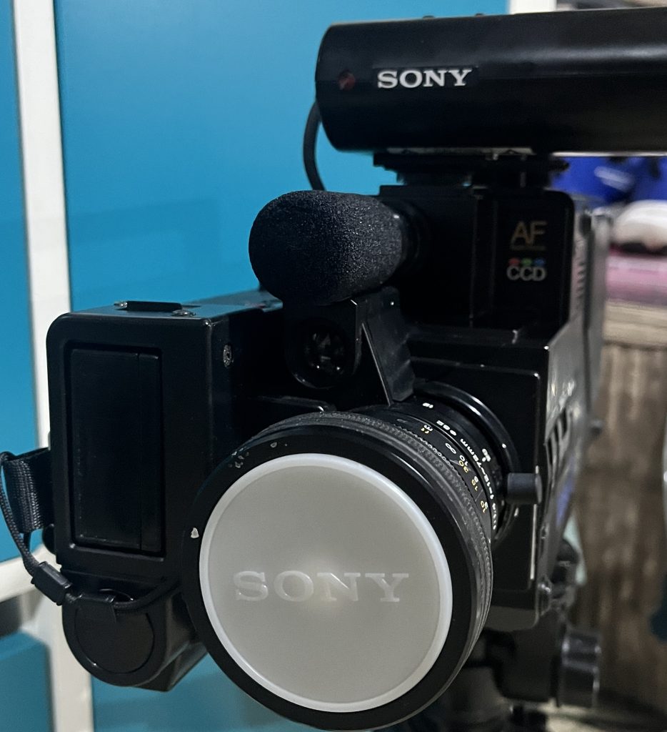 This unit is from 1985. At forty years old, it is now ‘beyond’ retro, with 90s in that field, right now. In general, it is immaculate, clearly being kept in the special carry case for years. This case is the premium version, which does have one extra part in it…two male-to-female coaxial cables. The design is fascinating! A cover is used on the front that covers the lense and microphone. This allows it to be carried or placed down as a Video8 player. I love the ‘tiny’ video cassette recorder look on its tail. I am now on the hunt for the accories for this. If nothing else, I want the charging unit to at least try the old cells. I was more akin to using VHS tapes, with what I deem a full-video-camera. This was at school, but there was a Video8 camera avaialble that we would use for ease of mobility.