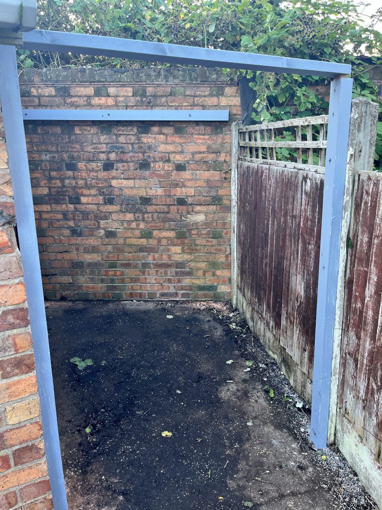 Upon the start of a project, consider the points that materials are fixed to. Looking at the frame for the bicycle canopy, you can see that the three sides of the space are all being used to support the structure. The left and back walls have fixed beams on them and the right post is fixed with an upright. This ensures that it would stay-put. It’s just a ‘post’ to tell you that practise will help, but confidence is key in knowing that you can. Forethought is what matters, consideration and practicality is the winner of your projects!
