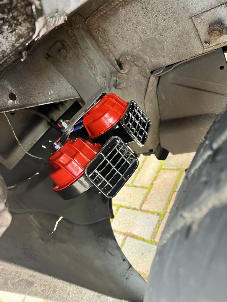 With Vyvyan’s MOT test looming, I needed to do some extra fixes. The horn has played up since I bought her and has needed to be changed. With the underside having a broken splash guard, I also decided to swap that, too. Upon inspection of the old horn, it appeared to be waterlogged, for which I have no doubt was the actions of a broken guard to stop this happening.