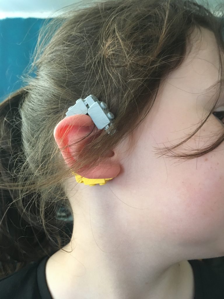 The build is adapted to fit around the ear and has a good use of hinge-bricks. The hands-on approach of this is what really hit me in the core. I adore this, I adore the aspect that I can see, something that I would have done in the past. What a gem Lego really is, but more than anything, what a gem that solid experimentation can bring. Excellent stuff, it’s a happy moment from the past.