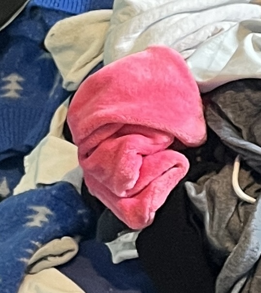 This image is of a fluffy piece of clothing, screwed up in a pile of washing. Not all will openly see it, but I quickly noticed a ‘Jim Henson‘ style of Scrooge-like face. I did say that if the top part was red, I’d think they were wearing a Santa hat. I wonder about this, though, how do the shapes give us this impression? If you look at pareidolia, and study its science, you come across this idea of the human brain trying to make sense of what it sees. Due to a face being something we can all adapt to, it is what we see. Just a thought, just a shape of things to see!