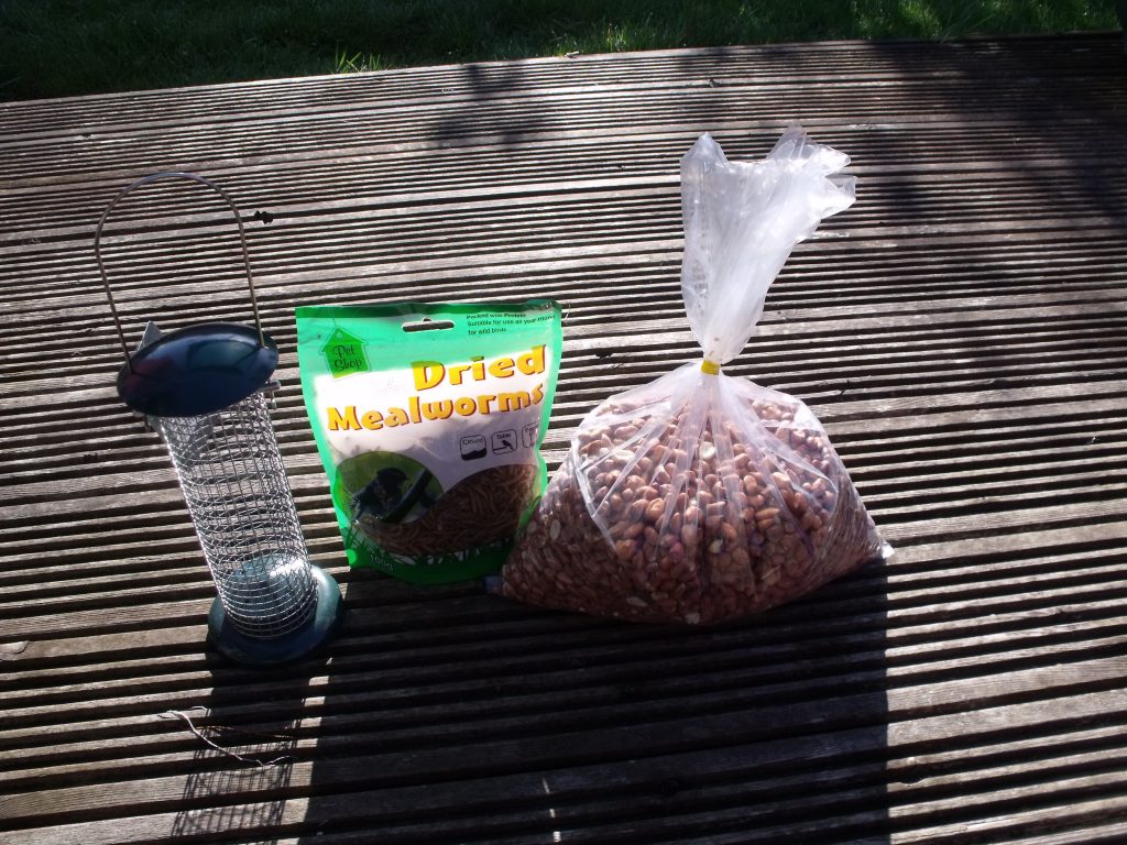 Finally, in the images, we can see the feed. I need to begin by feeding the garden, not the actual garden, but the animals within. I have chosen a cheap bag of dried meal-worms (99p), a bag of bird nuts (More expensive nowadays, £5.90), and a starter feeder (£1.99). With a grand total of £8.88, this is not an expensive endeavour. Having the stand already, it has saved another £10 or so. The only other expense will be that of a wildlife camera, I will be purchasing one of these in the next fortnight (£45). (My original idea was to rig a PC camera to an open-source program, but it is a lot less demanding to get one of these inexpensive cameras from eBay. With a couple of weeks of feeding, plus a few extra days of tech-testing, we will be ready to start the experiment by the third week of November.