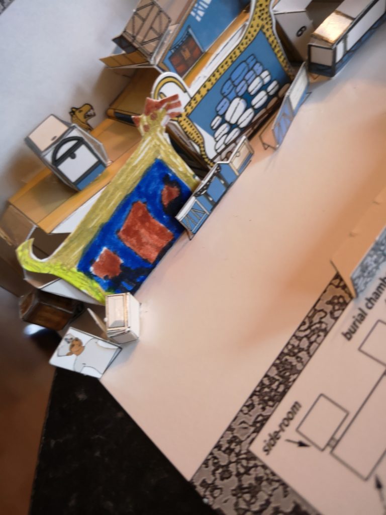 The Tutankhamun book had a craft project, within, and thus, it was also made to add more depth to the build. The end result was great; it did what was intended and created a fabulous way of learning through kinaesthesis. I am a kinaesthetic learner and always get more, if not all, from touching the objects and forming ideas through a physical connection.