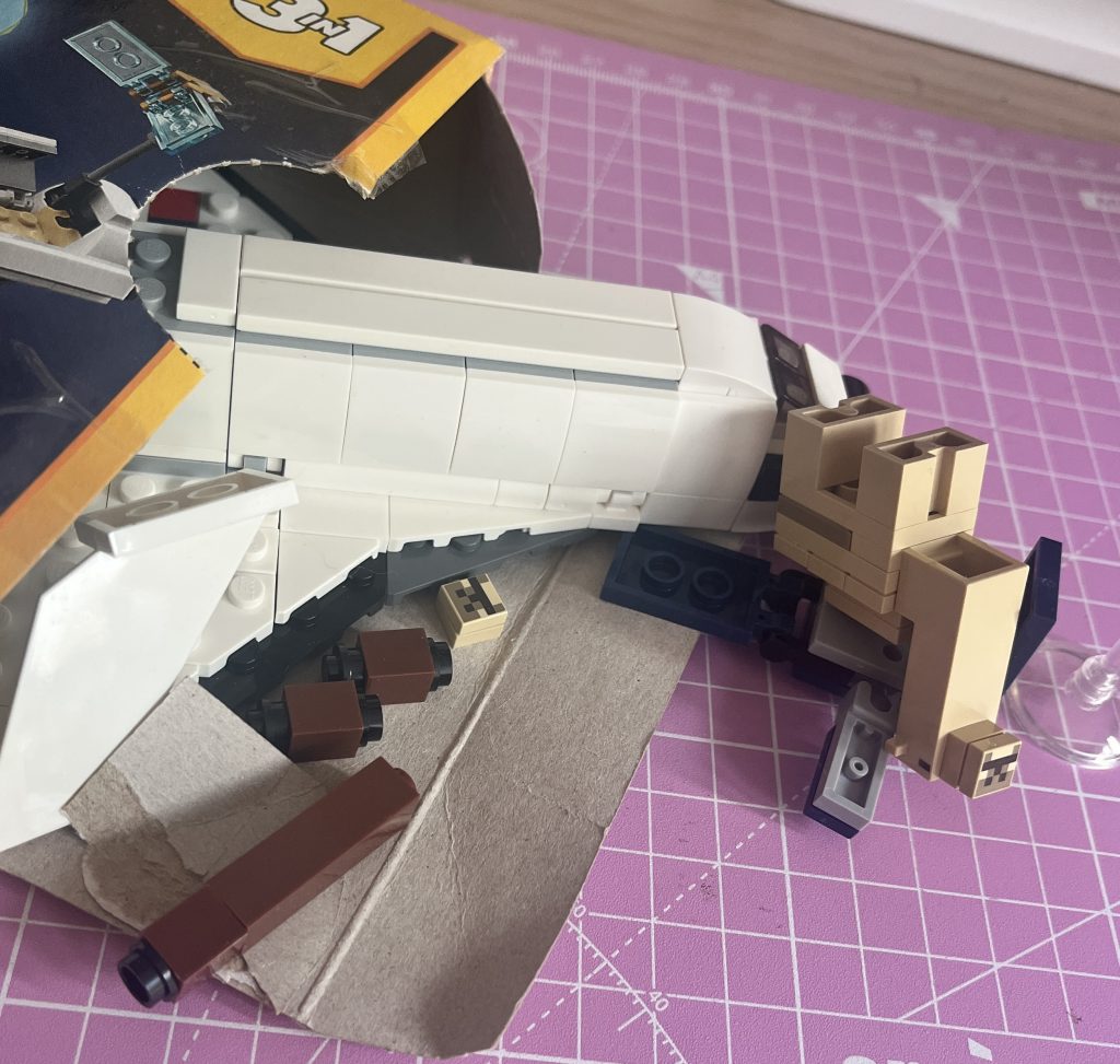 The Lego sets have been less available from my local charity shop, of late. When I see one, I am happy to pay a reasonable price, but the value is usually higher due there being less of them. Dealers are also ‘grabbers,’ and so collectors, kids or adults alike, miss out. So, onto this set…and what a doozy it is! The best bit about this purchase, and the reason that £6 was okay for a £9 set, when new, is it had a camel in the box. The previous owners had left a bit of the Minecraft Desert pack within. That little dude was staring at me with his blocky-eyes!