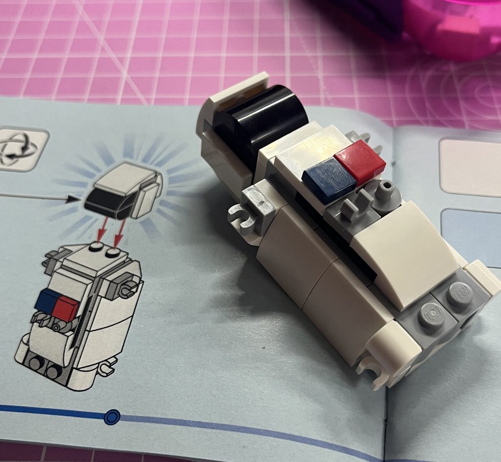 This is a poor set! Pocket money is better used on another small build. There are a few that you can buy, in 2025, that cost the same, and will give you or the little-ones, more pleasure. In fact, as of writing this, buy two of the F1 mini-cars for £7, and keep the other £2! At least they can battle it out on the dining-table. So boring, so badly designed. It’s more of an after-thought, to be honest. Moving along!