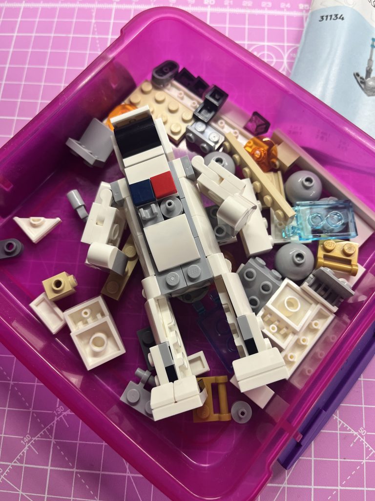 Please be careful when buying an open-boxed-set. You can’t be sure it’s all in there, and a fair price should reflect that! Turns out, with this one, there was no issue, it was already built! I decided to take it apart and experience the Space-Man model, instead. Building it up to the point I was about to make the back-pack, I stopped and pulled it apart. What a very poor model. One of the worst I’ve done in all of my reviews. I have only scored it 5/10, as the shuttle is a half-decent model. I rebuilt the shuttle and stayed with it.