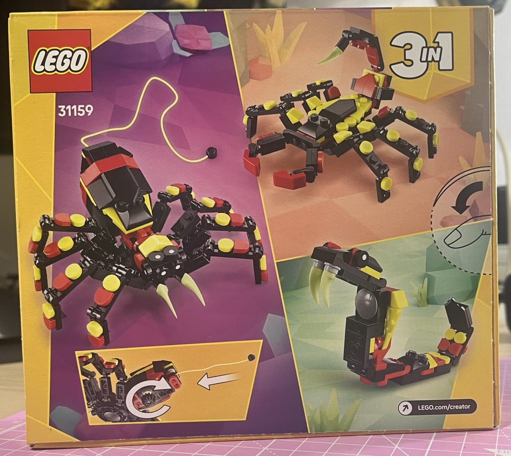So, for 27th October, what’s needed for a successful post? A spider, of course! I decided that as the schedule landed on Halloween week, something quite in-keeping would be the best option. Lego have released a few, new, 3in1 sets, in recent months, and this is one of them. On the outset, it looks like a basic set with not much for your money. And so, the first half of the build was exactly like this, and true to that feeling.