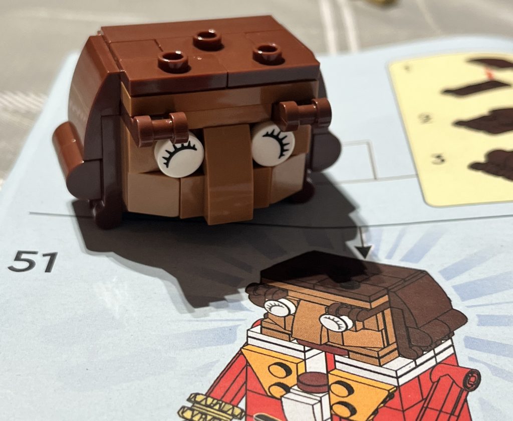I was originally going to complete the roller-coaster set for the Christmas Week Review, but I decided to purchase this at a bargain price of £7. For that, this was amazing and a lot of fun to build. It is not unlike making up a Brickheadz set, forming the core of the body and adding to its sides. It is cheery, and has the expected ‘cracking’ action from its jaw.