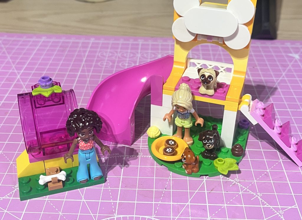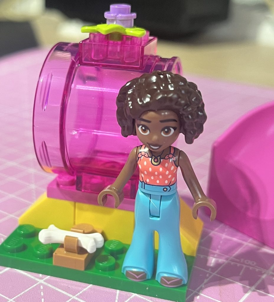 It has been a while since I have reviewed a Friends set. I wanted to find a small set that sat within the price range of a kid’s pocket money. I found this for £6.99, having £2 off the normal price. At this cost, it’s okay, offering nice colours and a building exercise for smaller children. Even the box shows this idea of teaching little hands how to build. I like this and love to build these 4+ sets to see what efforts are made to aid little ones learn the Lego ethos of building.