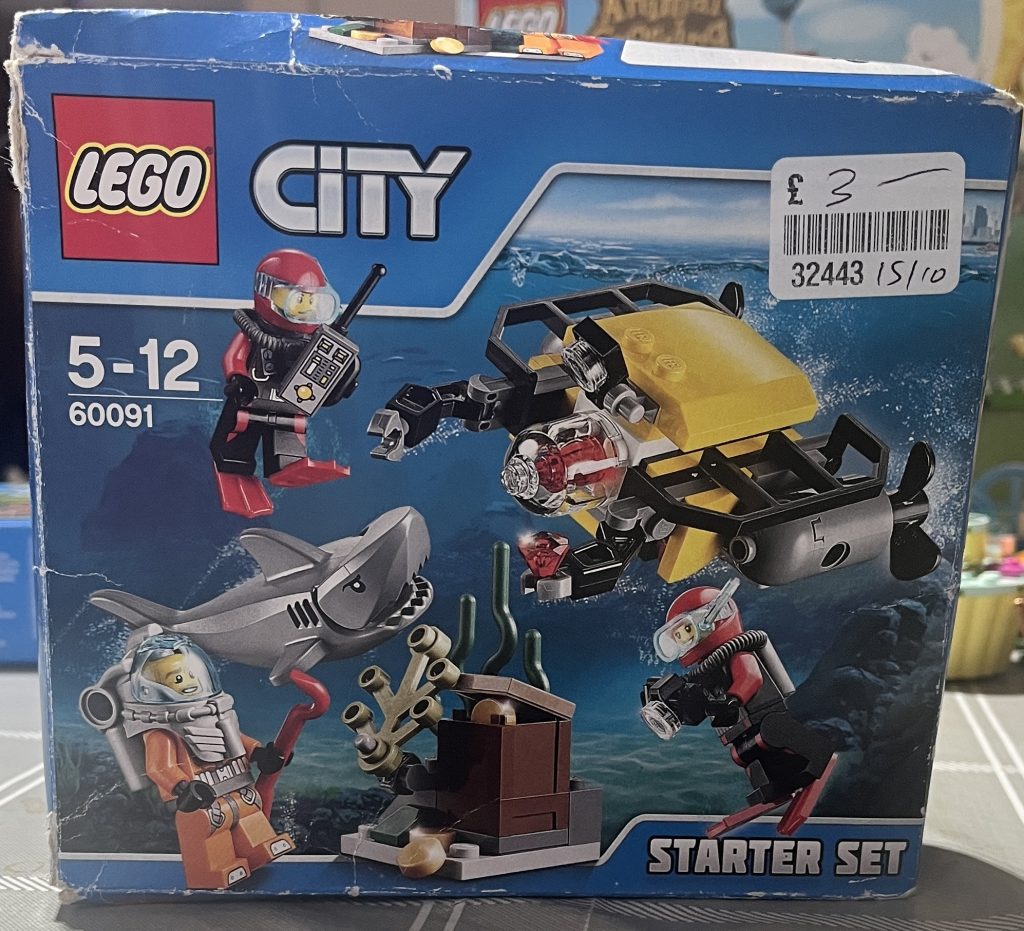 With all of the sets that I recently attained from the charity shop, there will be a lot of these posts. It’s another super find, but like many, it is missing a few parts. Saying that, most of it is here, and it is really sweet. This is less of a ‘whole’ set and more of City ‘Battle-Pack‘ style of addition. Having a shark, in with it, is just a bonus!