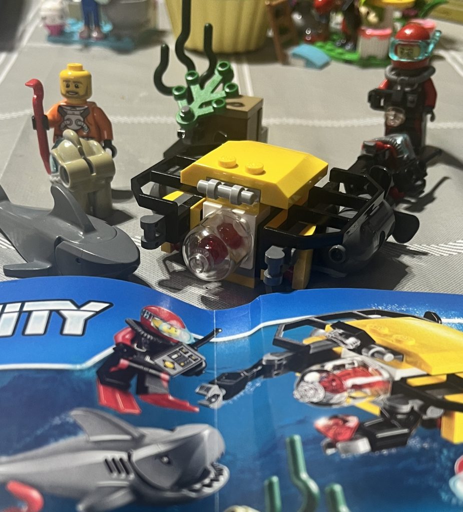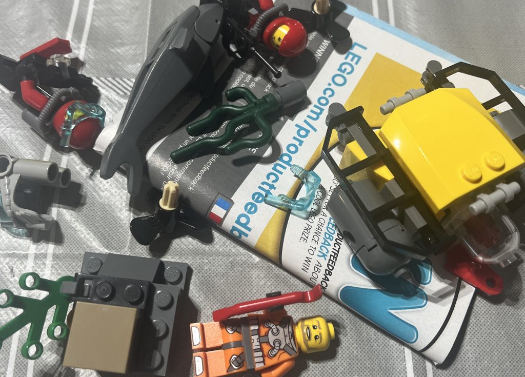 You won’t find anything difficult, here. It is clearly designed a parts accumulator for a childs collection. The ROV is simple, but a build that is a little more that what you would find in a Lego Calendar. Divers will make any diorama or play space, look the part. This set is from a a few years ago, where I am hoping to get my hands on the sea-base, one day. I do have the submarine in the Lego ‘finds,’ so will add them together for a keen looking display. If you see this, it’s work the few pounds that I paid for it, but don’t stretch to far for a used one. There’s not a lot to it, other than a small tabletop play kit.