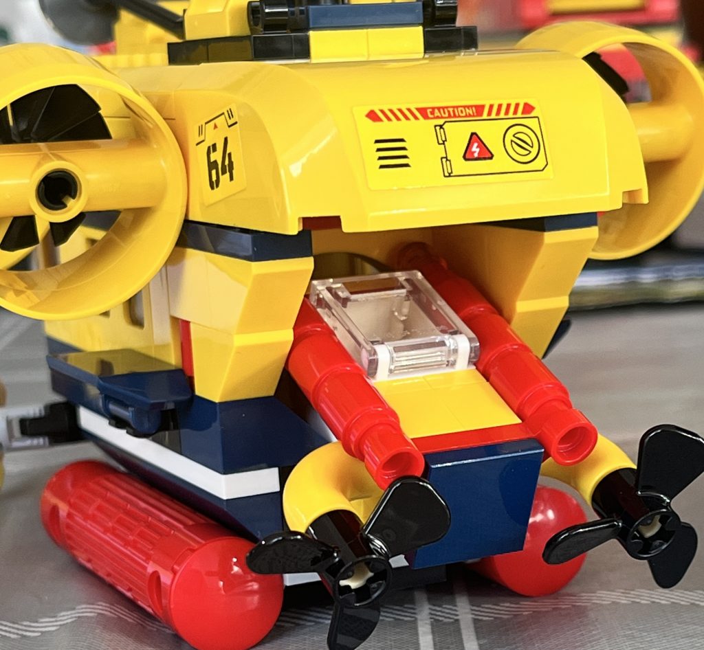 The minifigures are very inkeeping, two that head out to speak to the crabs and possible some research, and two submariners, inside the body of the yellow boat. I am still unsure why the rear has no door to seal it up, but I found that sticking the ROV (Remotely Operated Vehicle) onto it, appears to do the trick. I made sure that I hadn’t missed anything, but asides one piece that didn’t belong with the set, there were no more. It copuld also be a part of the make-up when you have all the Ocean Exporer sets, similar to that of the Space sets being modular.