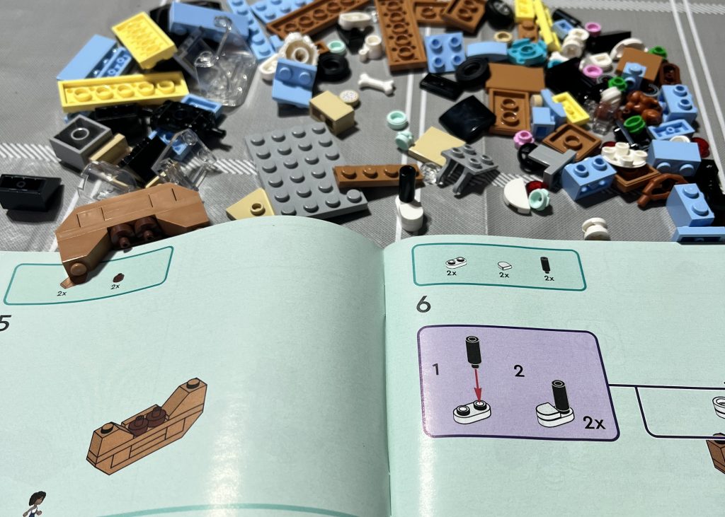 As I built it, I was struck by the three bags that were in the box. It became apparent that they needed to ‘all’ be opened and scattered. For an example, the minidoll parts were in separate bags. As an access issue, this is not great, but for any keen builder, they will manage, just fine. The stickers were an unwelcomed addition. They look great on the set, but the circular one atop the cab was very difficult to centre, and with troubled motor skills, it would be near impossible.