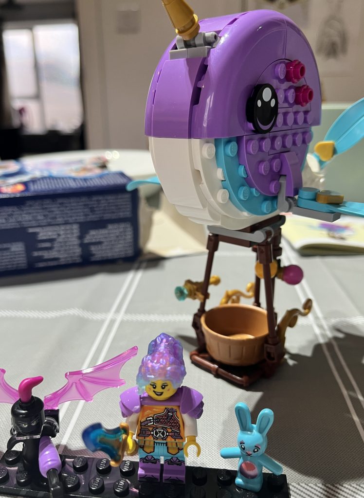 I adore the artwork that is found within the instruction booklet, but would have loved to have seen the paper bags used. I can only assume, at this point, they are being tested across larger sets, only. I hope to see more of them. The overall product is lovely. Colours are magnificent and Izzie’s hair is dazzling. As this is the first Dreamzzz set I have built, I finally get to see how the Grimspawn are put together. Small, but interesting, their arms are shaped to hold what is best described as a large wand made from a purple carrot and a hook-clasp.