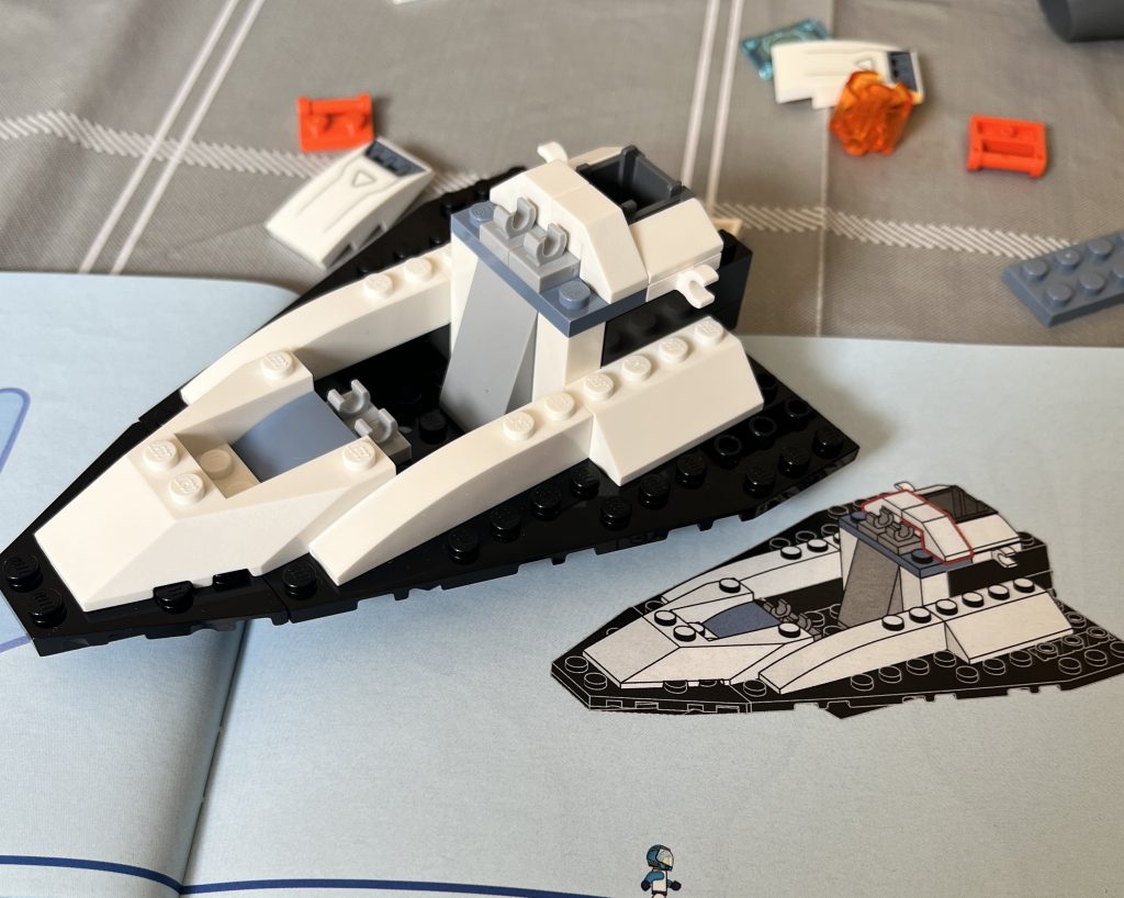 I have gotten my hands on another of the new Space sets. This one is small, at a cost of £17.99, and is quite the cutest of builds. I adore the 4+ range, and enjoy the access it allows. The rear of the box has some excellent imagery, giving you an individual unit aspect. If you have trouble with orientation when building, don’t be afraid to try these out, they make building straight forward , with the illustrations being a solid guide. I feel that it is a little overpriced, but also understand that you get two minifigures and a lovely little alien with it. So, I’m still happy.