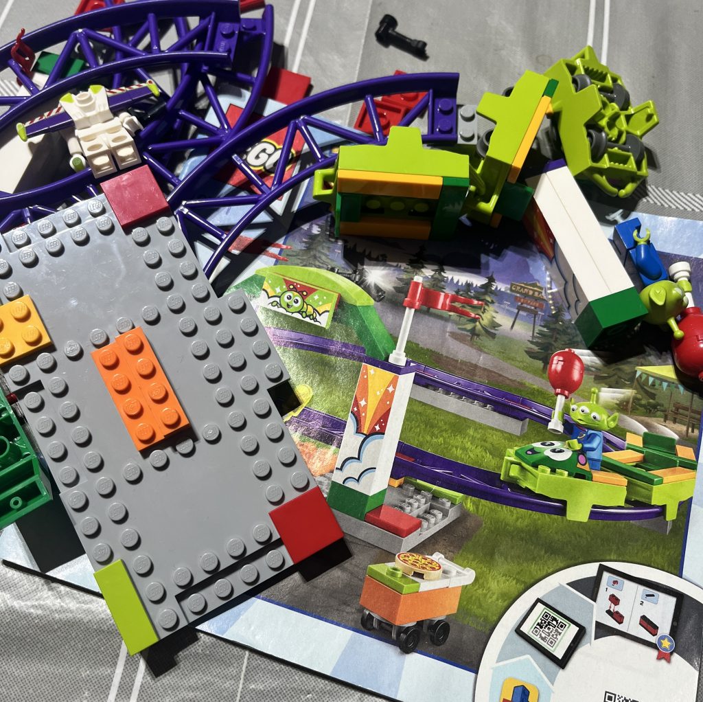 I have fallen upon a large sum of used Lego, this week. Each one in a plastic-zip-bag. I did leave seven of them behind, and chose seven…or eight, for review, equaling a grand total of £47! This is the first set, from this haul, and it’s a Toy Story 4, one. Like a lot of these sets, it is a gamble, for parts, but having looked through its bag, it look legit. Amongst the cool rollercoaster track, it has a pair of minifigure. The first is the later version of Buzz Lightyear, and the latter, an alien. I have the Space Roller Coaster to build for a review, and will come back to it, in November, but this was the first of the Lego coaster-track that I have experienced, and it’s pretty cool.