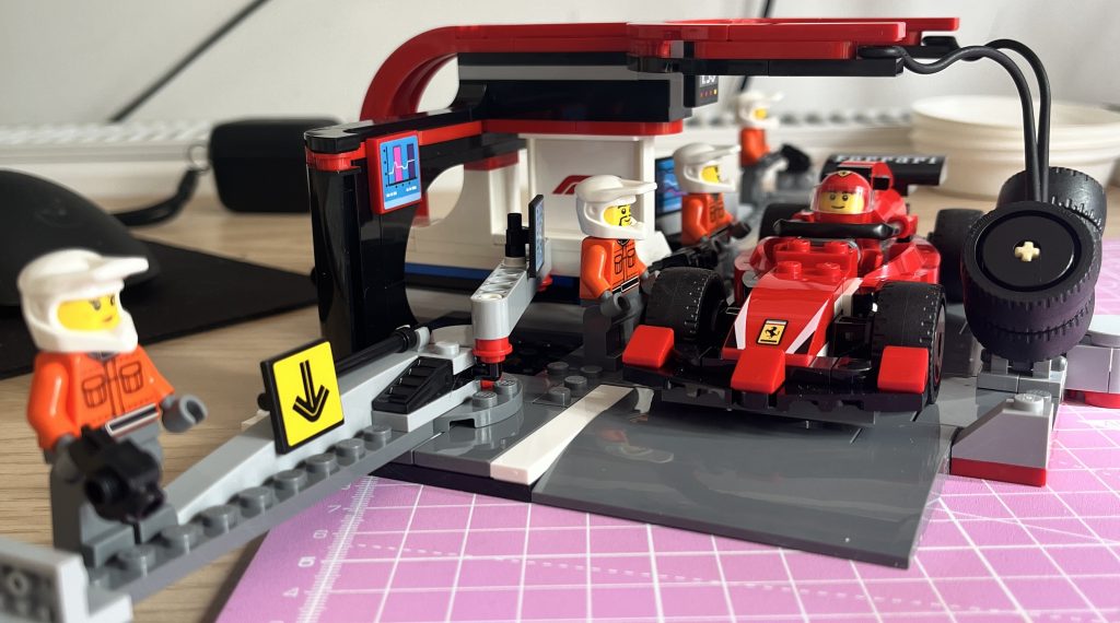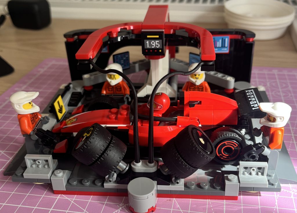 All in all, this is a fantastic build. It would be great, as a young one, to drive in and change them wheels before heading back to the track. Mixed with some roads, it would be additional fun to behold. There are some collectable minikit-cars to be had (these are released on the 1st May ‘2025,) but I am yet to see them in the shop. At full price it is a little beyond the birthday gift category, but I would say it would make a great gift in the Festive period of with some built-up pocket money. Excellent stuff…VROOM VROOM!
