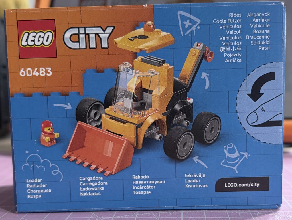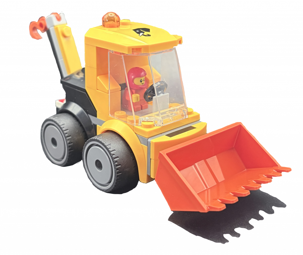 It’s time for the second of the four Rides sets. I do hope to get the other two, and for there to be a few more, as I adored the police car. Just like that one, the driver is baby figure, garbed in their orange, construction-worker, outfit. I chose this as I wanted to do a ‘Build with G’ episode with it, if anything, to show how cool these really are. I have noticed something about them, though, that I believe is why I am so fond of them…it’s all about the their design heritage. When you construct these, it is very much like a 90s build. I think about the time before solid chassis were added, and these help to mix and match the best of modern ideas, with the greatness of simple vehicles, from a few decades, ago.