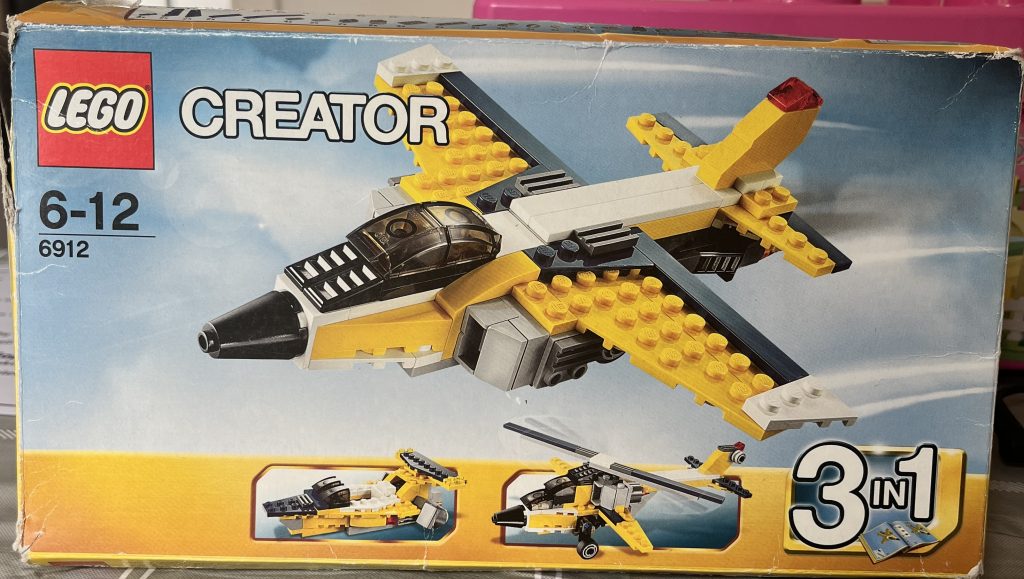 It turned out to be brand-new. The pieces were in their bag, still. It was quite nice not having to pull it all apart before I commenced the build. I was sadly missing one part, but it was easily replaced from my General-Parts-Population and so I was rolling, once again. The overall plane is very good. There is no doubt that it is a 3-in-1 set, the signature yellow parts make it so. Buying old stock at £15 would be a little steep. It is, at best, a £12.99 set in modern times, nevermind 2012. At £5, I am very glad I picked it up. If you get your hands on one, you won’t be disappointed; just see if you can get it for a tenner, or less.