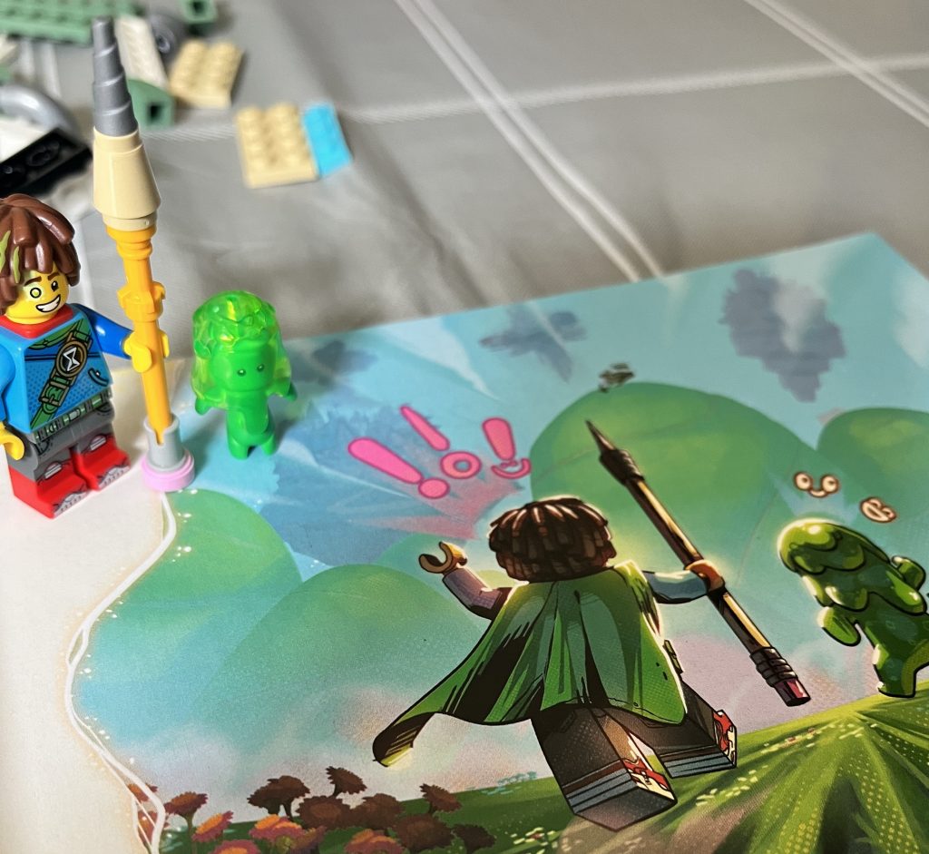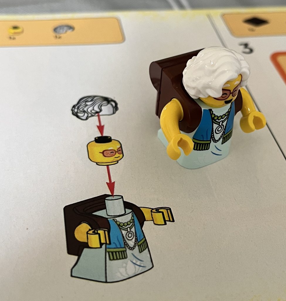From the start, it is apparent that this will be fun to build. The colourful pieces are great to work with and there a few different ones to use, too. Mrs. Castillo has a specific part for her body. It ecompasses scaffold-studs on her back, ready to add the backpack. There is also an interesting hourglass used for Mateo’s staff, and in the hands of Zoey.