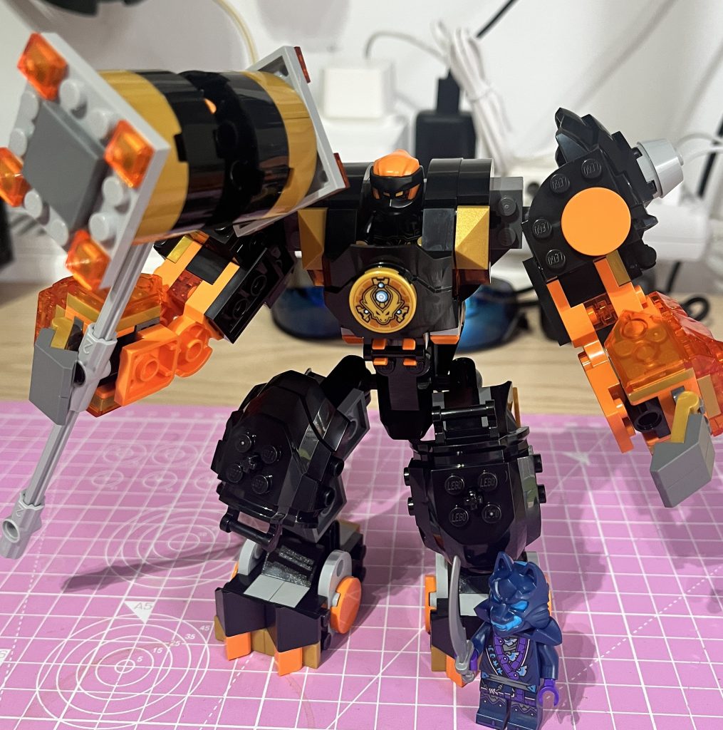 There is not a massive amount of things to say about this, but I can say that I love it, highly recommend it, and if you like mechs, Ninago or both, then buy it. I do intend to create a display for all my mechs, but for now, he sits next to the Hey Duggee gang! I do like that this has a different angle for its build. There are only so many options for the same shape of set, so any innovation is a nice touch. Oh, there’s no stickers, either! What a joy!
