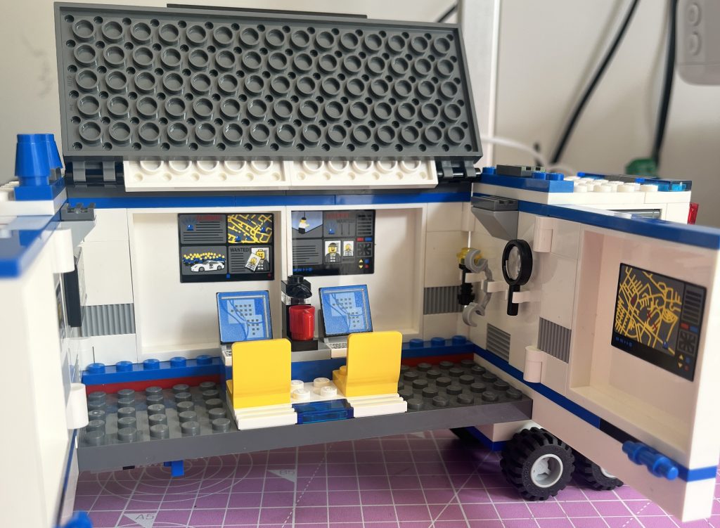 Coming together, it is a fantastic looking display piece, but also a great play-set. I do feel that the old style of building was great at feeling playable, with an additional ‘robber’s’ car and chase motorcycle added to it. Inside, there are computers and digital screens. It has a jail section on the rear and a storage area in the trailer’s front. In there, you’ll find a bollard and a strange looking cone. I am amazed that they have a magnifying glass on the wall, but maybe Sherlock will turn up. This is a great find and an even fun completion. Anybody will love this, should you come across it, take it with both hands! The best price, UK-based, one, that I found was only £13.49!