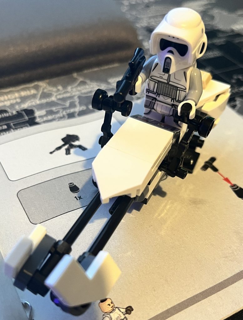 This is an incredibly fiddly set and is best suited to careful building and likely support from a grown-up. (I am reviewing this as I build it. Trying a new way of doing it, then writing my thoughts, as I have them!) Even so, the Speeder Bike is a fabulous build. The detail, with so few pieces, is inspiring. The section of white landscape is bit ‘meh,’ but is adds to hold up the price point. They range from £12-£25, but are removed from the site, often. This usally means you need to find them in old stock, that’s where Amazon helps.