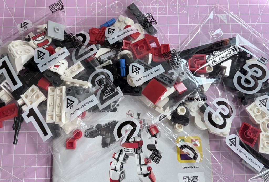What can I say? I just love to build these mechs. They are all built in the same way, with a few expanding on the idea. Luke Skywalker’s X-Wing mech had the wings on his back, turning the mech into an imaginative version of the said fighter ship. This set is simple, but still a nice build for smaller hands. At £12.99, these are average, but given a little time in your wish lists, you will find these down to £9-£10, online. It has the usual placky-bags, which is a shame. I have become accustomed to having the pappy bags, now. Well, how did this go, then?