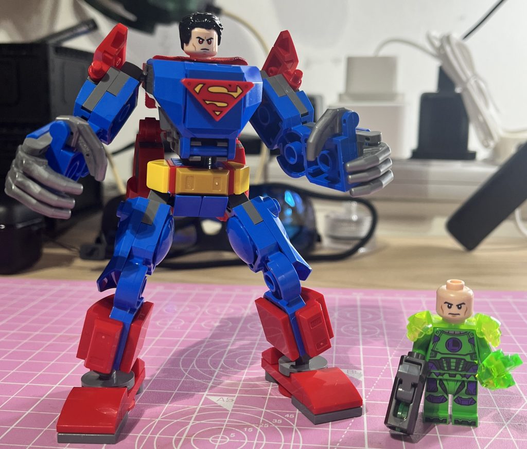 Looking at the minifigures, the heads seem cheap, I’m not sure if this is just a colour choice, but the tone is more like a cheap set from Temu. Other than that, they are pretty cool, with me opting for the red eyes of ‘angry’ Kal-El. The set comes together, smoothly, with similar designs to most of the other mechs, but with few parts to create the individual element. This serves to help the younger builder feel less overwhelmed. With a shorter build time, it is perfect for its desired audience. I would say that it makes a great birthday party gift, but look out for it at the cheaper £9-£10, cheaper, price.
