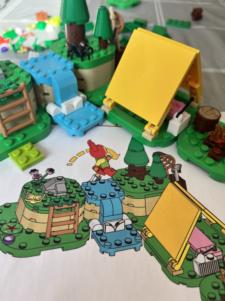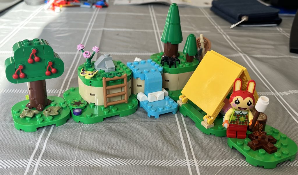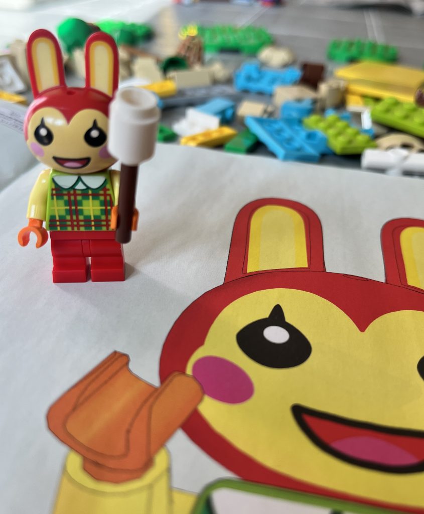 Each section is built in turn, and you get a sense not unlike seeing a painted canvas coming together over time. This was quite a shock, but it, alone, has gotten me hooked. The instructions are written for a younger audience, applying a beautiful art style that is connected to the game’s aesthetic. If you like to play Animal Crossing, you will love this! It even offers you to create your own setup. Mix-and-match the plates into any order, and even give Bunnie different activities to do from the wooden box. You are shown the play options before you even finish the last plate. It jumps out as a set that wants to be played with, as soon as possible!