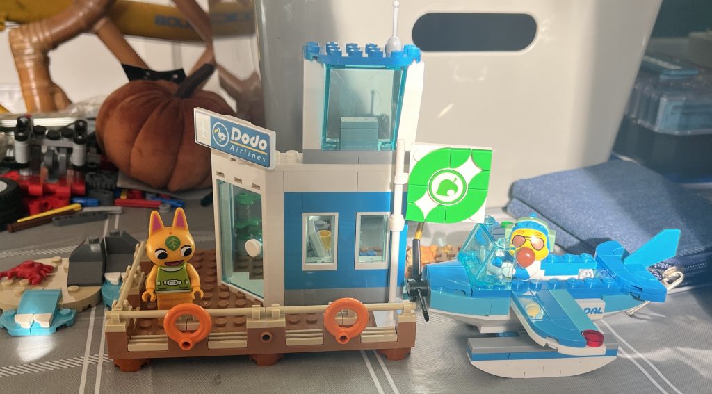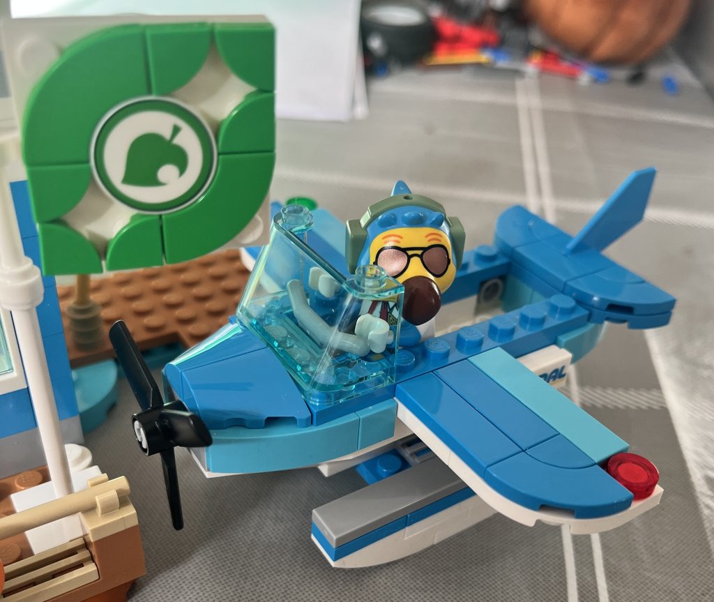There is space for a passenger in the plane, so you can carry out some role-play from the game. I am still confused about where the bar-wrench needs to go, so I used some of the spare open-studs to stand it up on the jetty. Placing it next to Bunnie’s Outdoor Activity set, you can see how multiple sets will make a sweet display. It actually looks like a diorama of the game’s islands. You will not be disapointed by this. It’s a little pricey for a birthday-party gift, but not as a treat or addition to the collection. This is my third Animal Crossing set, and it really has gripped me. I reckon that this set, was the nicest set that I have built in years. It felt complete, and ready for play. This should all that is needed in a Lego build. The colours, minifigures and the building, are all a pleasure to put together, forming into a super piece for play or display.