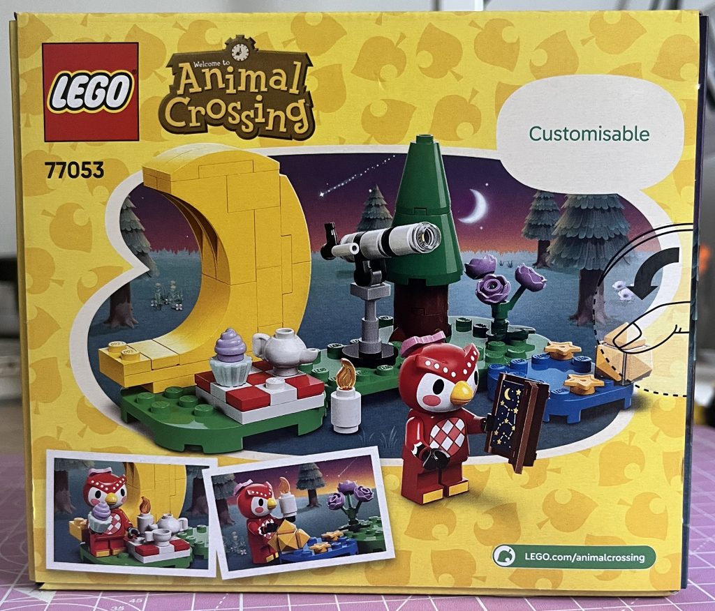 It’s a small set for review, this week. I have quite a few of the Animal Crossing sets, now, and saw this on for £7.80, in Sainsbury’s. It retails at £9, so like always, they offered it at a reasonable price. There’s not a plethora of things to say about it, but the value is in the Minifigure. If you have played Animal Crossing, this is a character that visits your New Horizons island, on occasion, and starts the astronomical events in game. Making a wish when you see a shooting star aids in you receiving the Star Wand from her. Picking up star fragments can be used for crafting, later on. She was her brother’s museum assistant in Wild World. This is quite sweet, with a cool setup, that somehow has a huge moon, one that does not need a telescope to see it!
