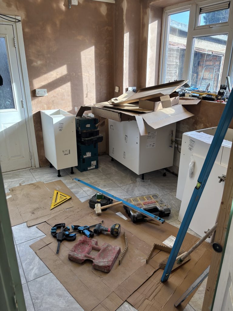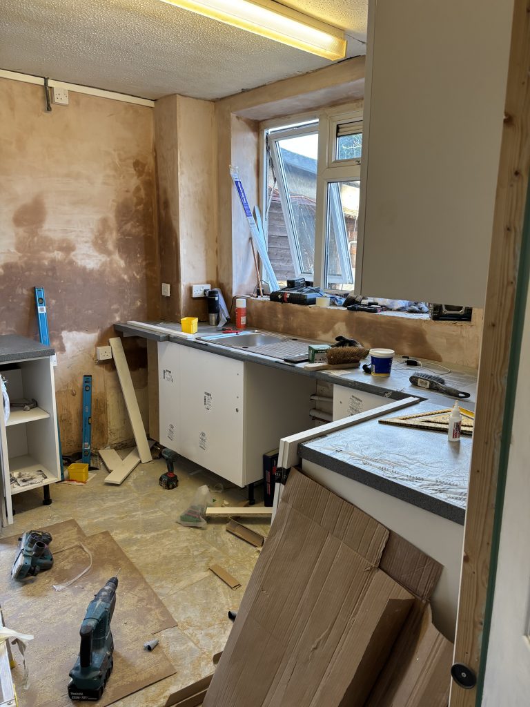 In the past few weeks, Steph has had a new kitchen installed. The old one had been active for twenty-six years and it was time for it to be skipped. This post is just a telling of the speed that it can be changed over. It was like this: