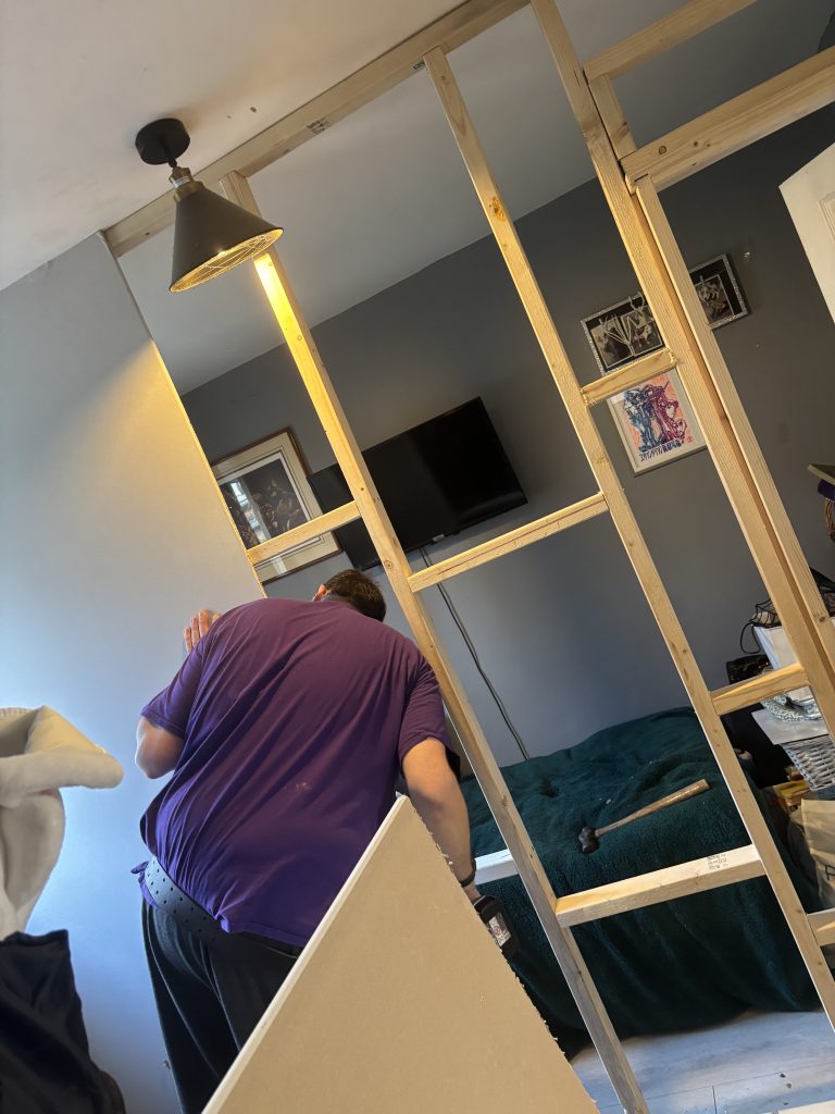 As Christmas was approaching, I needed to create a temporary split in one of Steph’s rooms. This would allow my daughter a space that she could be during the festive period. Having autism means she needs to withdraw as a matter of urgency, so this was the answer. I had planned to build this for nine months, and the time was upon me. After my foray into plastering, I was going to expand it to a larger skim. How did this go? Let’s find out.