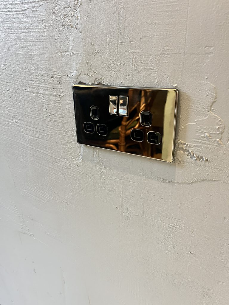 Phase Three – Plastering and Socket One: So the plastering began, and I made the usual mess! It was a bit thicker than the first wall, but still not enough. Even so, it went on the boarding and is now…reasonable. This was a much bigger wall, but I felt more confident, this time. The tape that I bought a few years ago was used to cover the gaps in boards, and worked well. Turned out, it was a good investment, at £1! Once it was complete, I filled in any gaps and we put the dehumidifier on. What a champion!