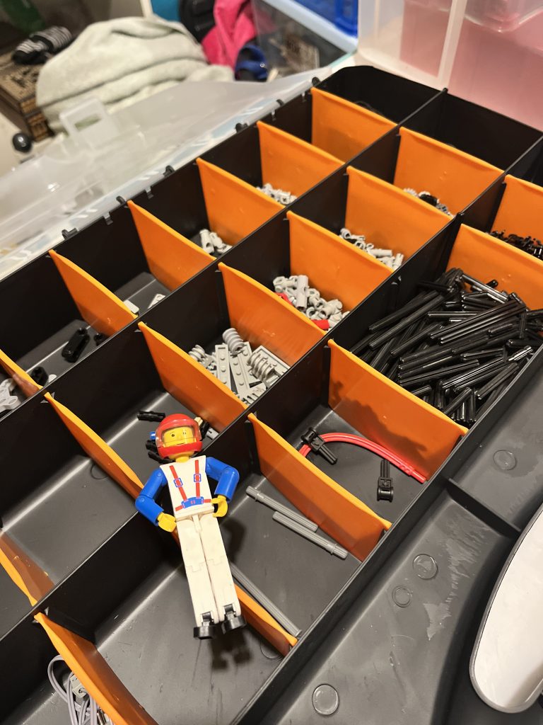 Having many boxes of loose Lego has its downfall. It’s only of real use when it is separated out. Some might consider the need to sort by colours, or they might just be happy with the same type, together. Whatever it is, it makes sense to know where it all is. I have spoken before about my Sorting Station. This is under used, as long periods of time, picking at pieces, is monotonous. However, I have done quite a lot of it, making sure that Technic is set into its own box, ready to be split up, one again.