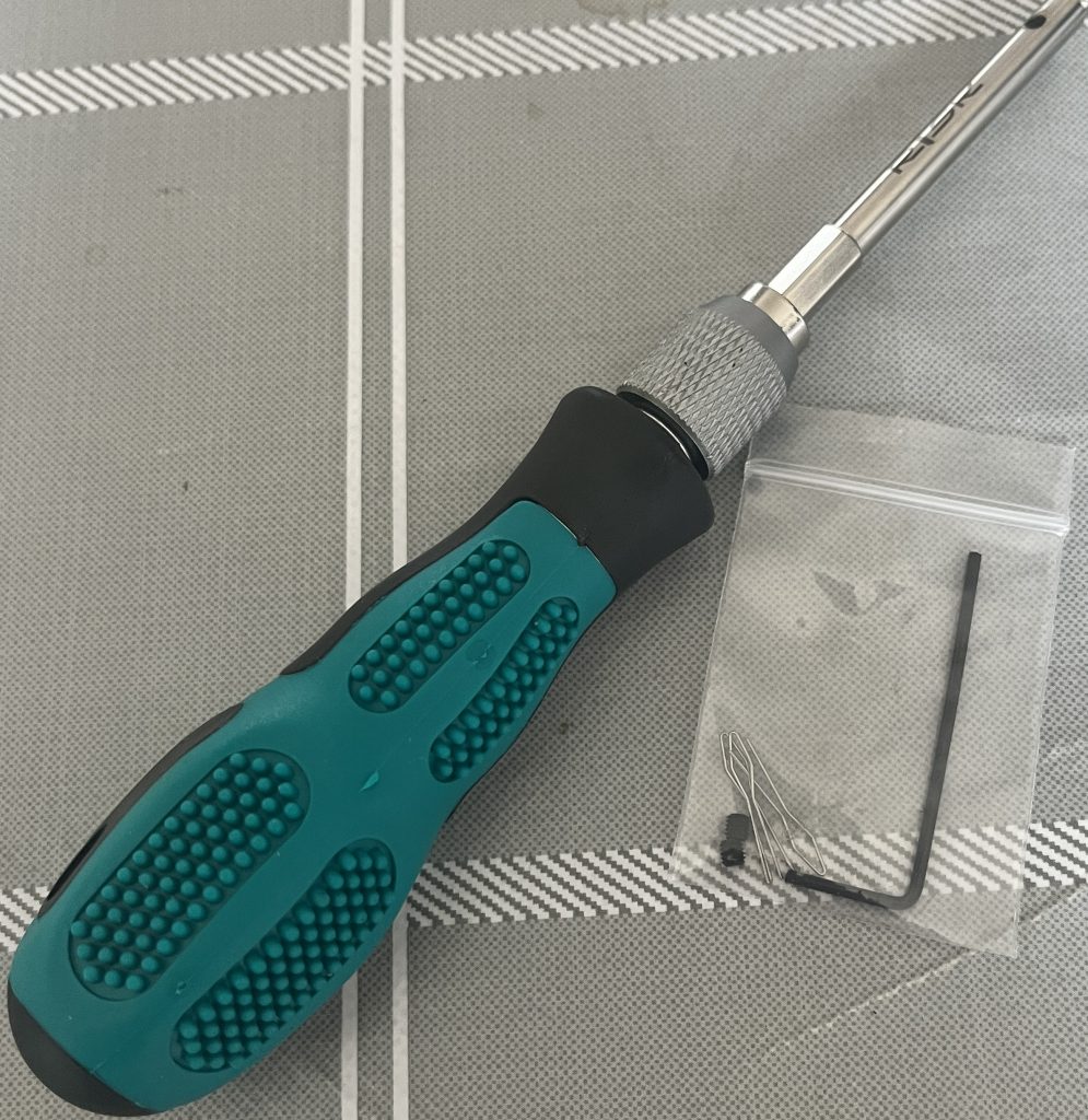 The wire acts as a hold, pushing into the end of the cap as the two notches turn the flat-headed top. There are three wires, in all, with a small allen-key to add the threaded grommets. I managed to get refit the spokes without it, but this will allow me to repair wheels, in the future, and I thought I’d give a ‘First-Look’ and hope that it stands up to scrutiny. For now, it is solid and should do well in its new ownership.