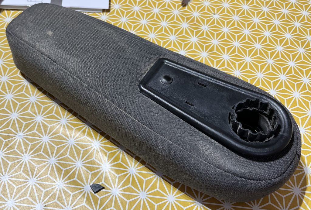 After the refurbishment of the driver’s seat, I needed to find a way to make the armrest work, again. It appears to be a problem with all armrests in these vans. Vauxhall, Renault and Nissan, all chose a tragically bad mechanism to support the arm.