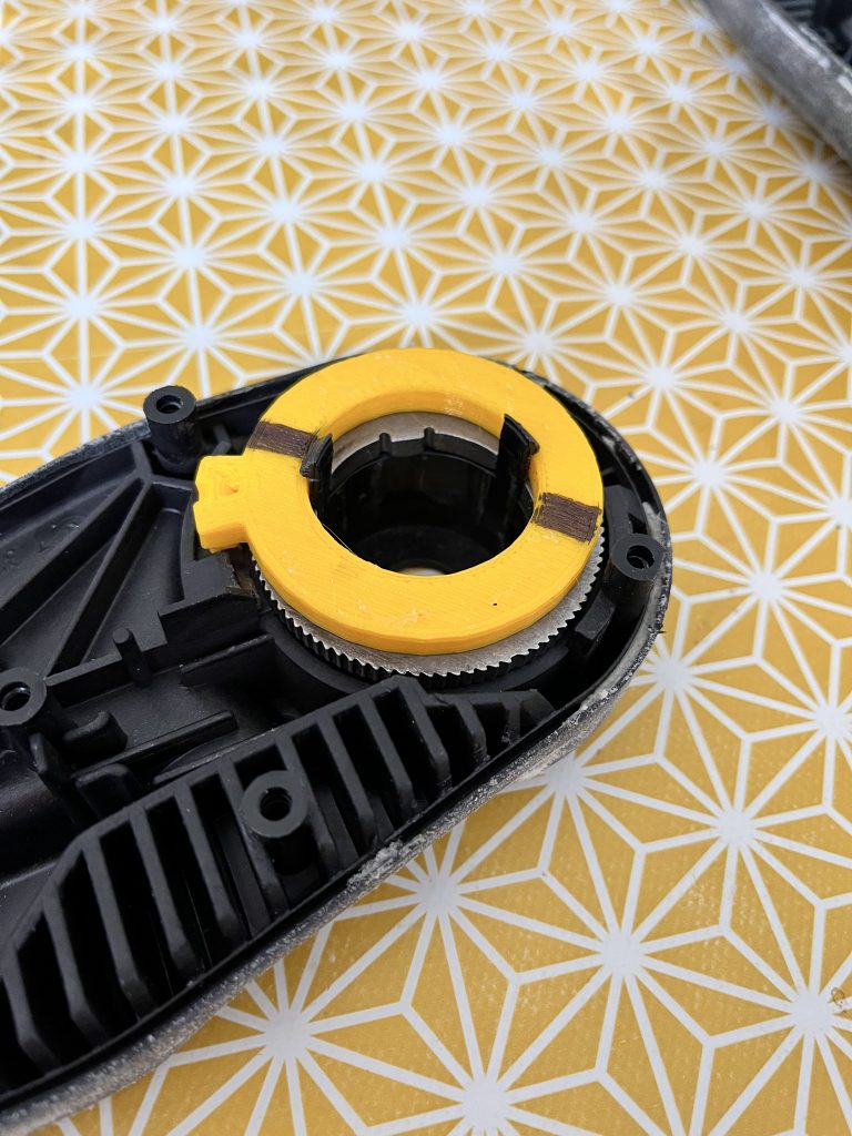 I settled on a part that I named, the Stop-Ring. This was designed to sit on top of the original, metal, ring.